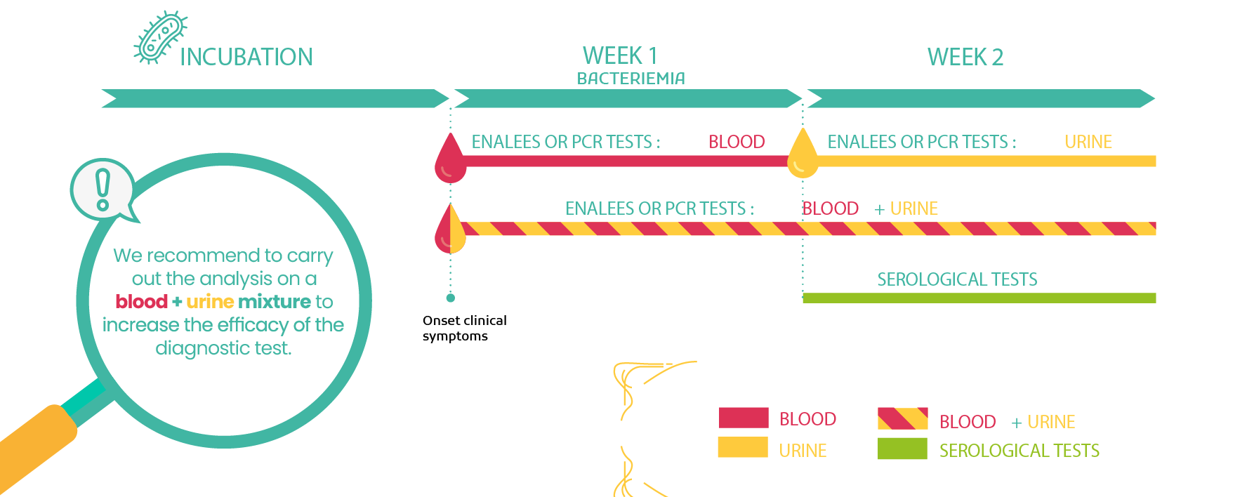 It is highly recommended to test for the pathogen by PCR in the blood within the first week after the onset of clinical signs and then in the urine.